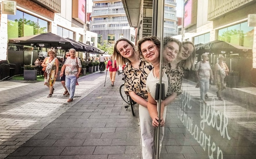 Ons atelier thuis werd snel te klein, dus gingen we op zoek naar een grotere locatie. Zo vonden we een pand in de Wijngaardstraat in Kortrijk, waar we samen een koffiebar en bakkerij uitbaten.